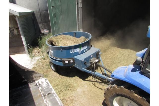 After considerable market demand, LuckNow Products is proud to reintroduce its line of Bale Processors to augment its time proven mixer feeder line. The new and improved BP744 model has a 7 foot diameter tub capable of processing all of the round or square hay and straw bales you can throw at it. It includes a discharge side capable of spreading processed material up to 40 ft away with a 10 ft wide spread and an opposite side capable of piling into windrows. Built with the same rugged and reliable design like all other LuckNow Products, the new Bale Processor will keep on processing for years to come. |
