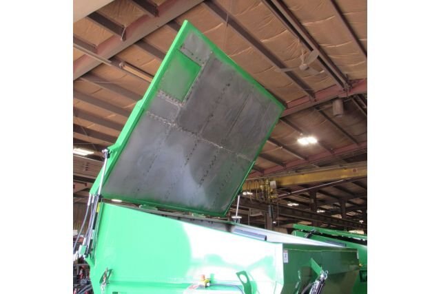Hydraulically operated roof for loading large amounts with a loader tractor.