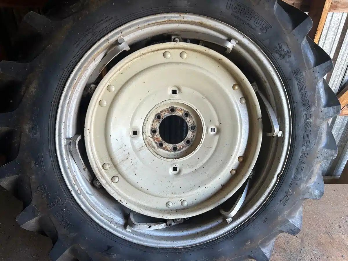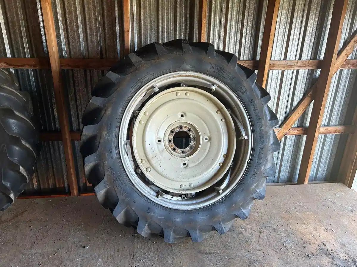 Power Adjust Rims with centres from IH 784, 13.6x38 Radial 8 Ply Tires. Set of 2. No fluid in wheels, Will fit many IH/Case International tractors, 74,84,85,95,20,30 Series